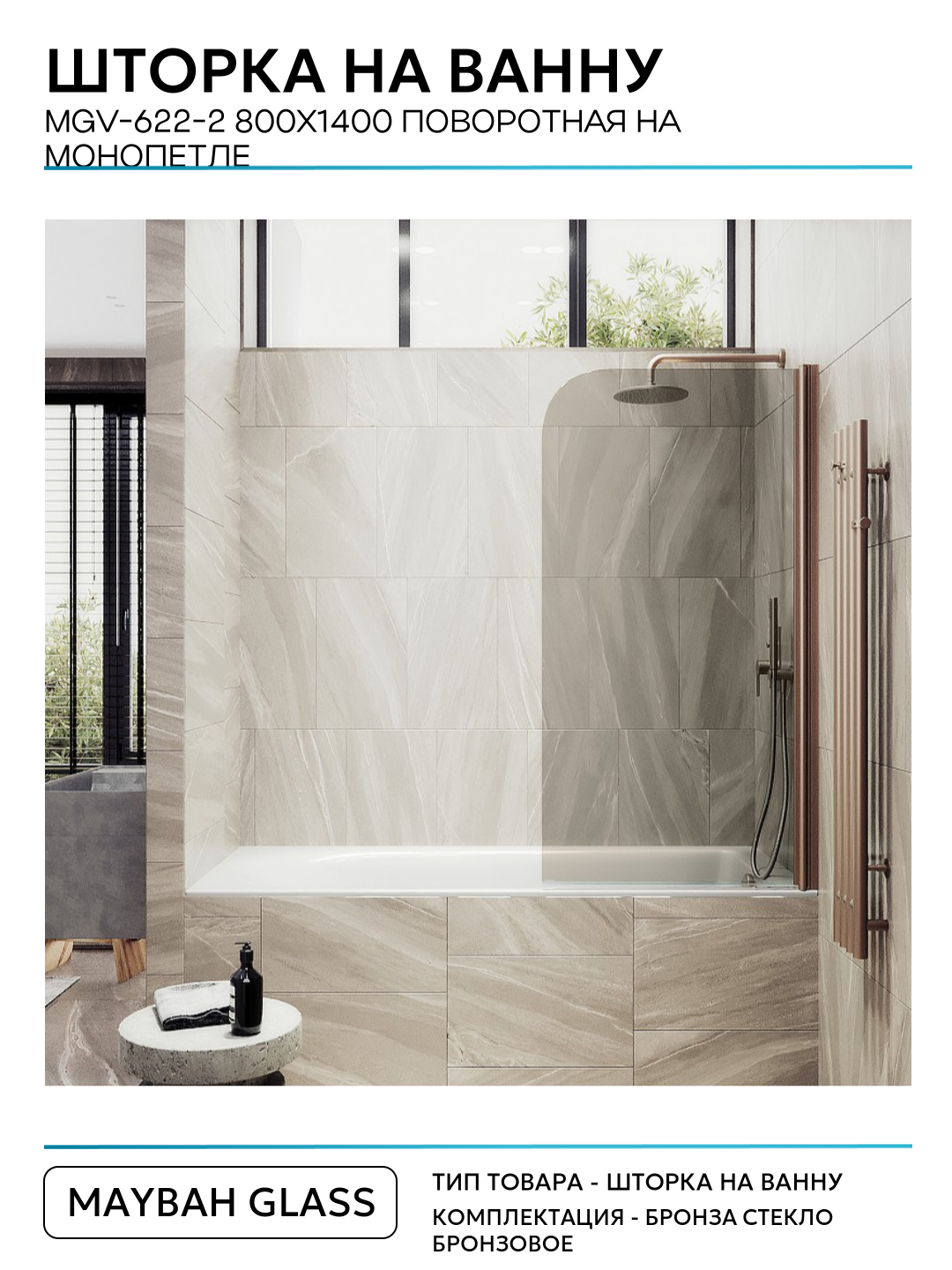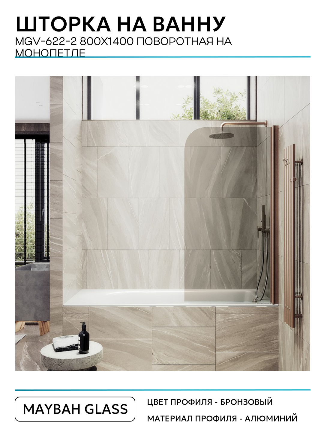 Шторка на ванну Maybah Glass MGV-622-2 800×1400 поворотная на монопетле Бронза: сравнение цен, характеристики, фото, актуальное наличие и цены.