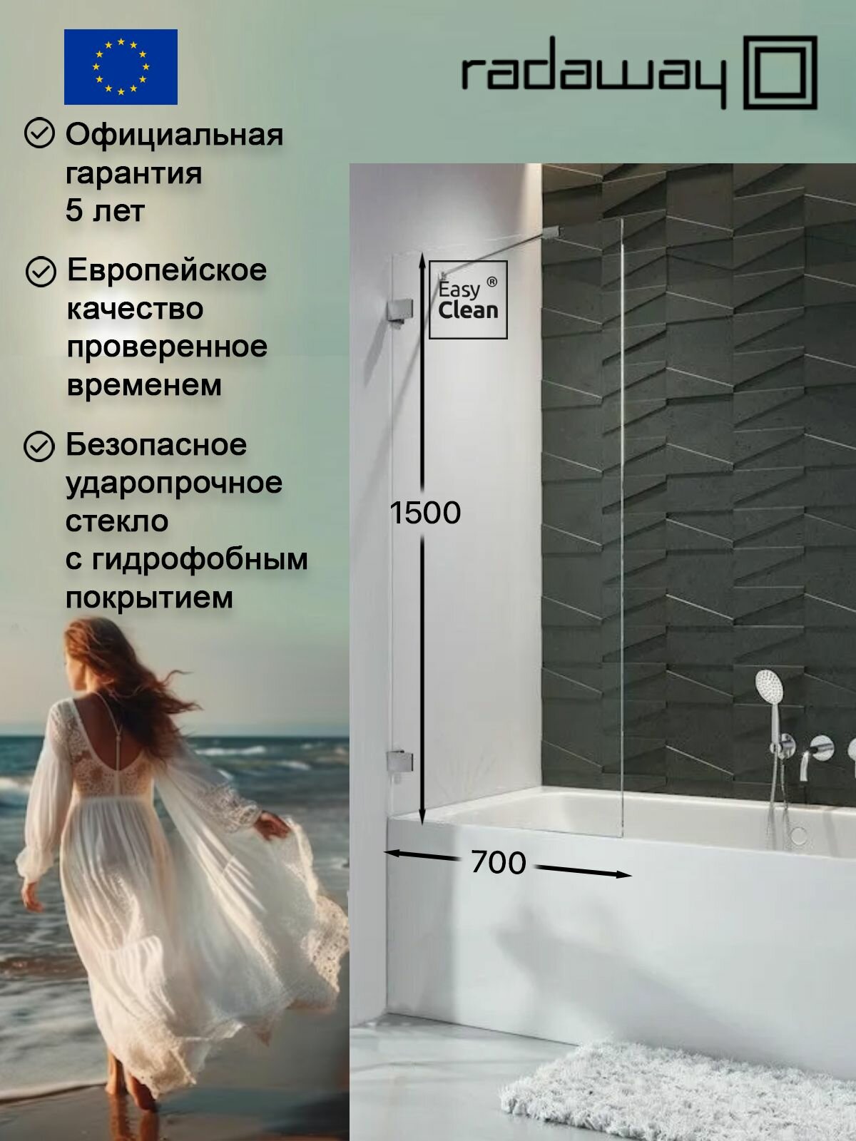 Шторка на ванну Radaway Euphoria PNJ 70 в прозрачном стекле, профиль хром, неподвижная: сравнение цен, характеристики, фото, актуальное наличие и цены.