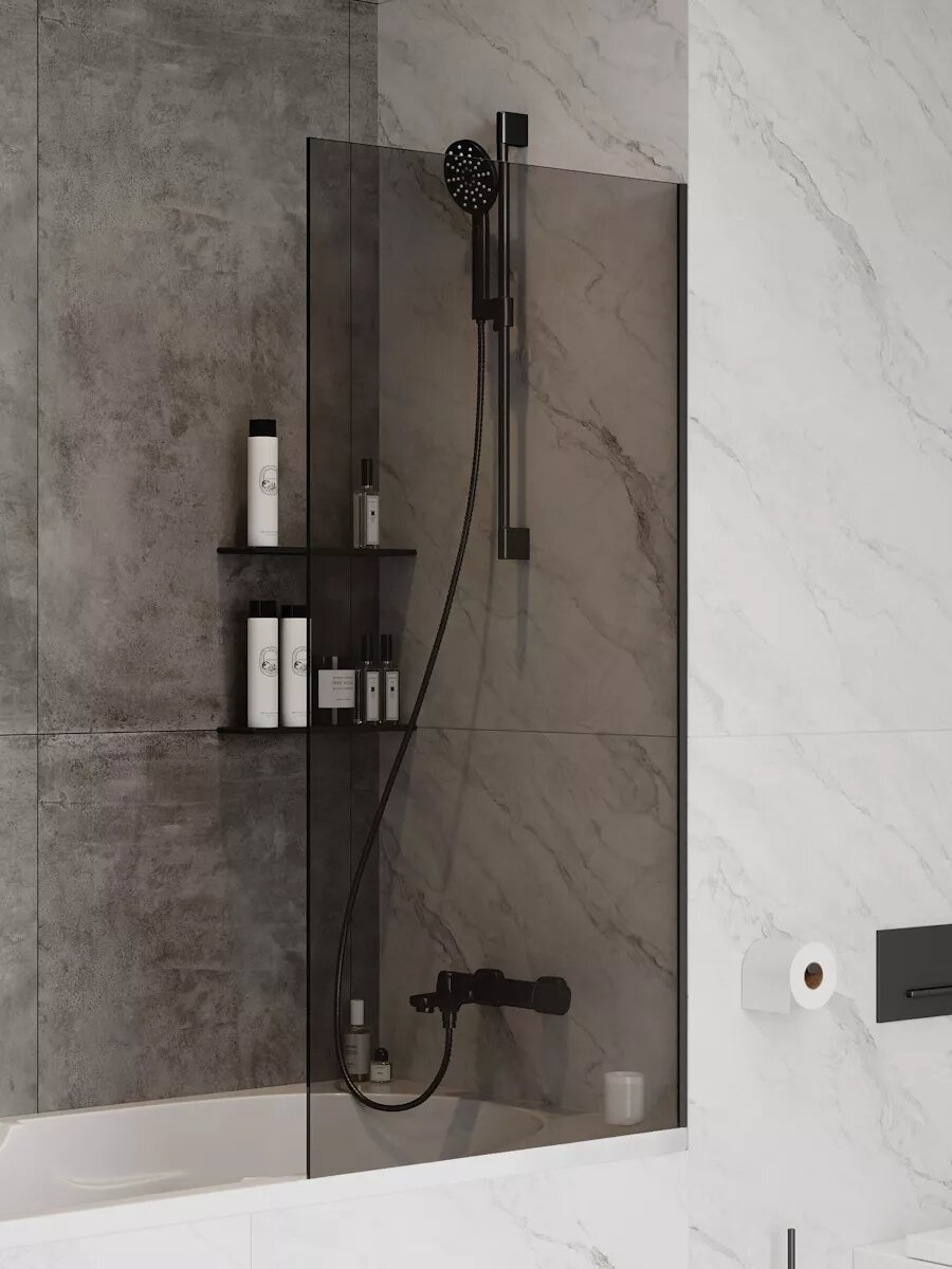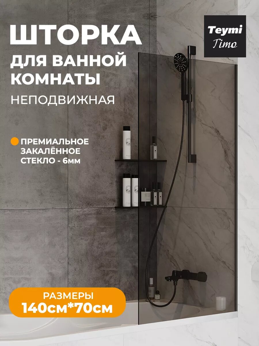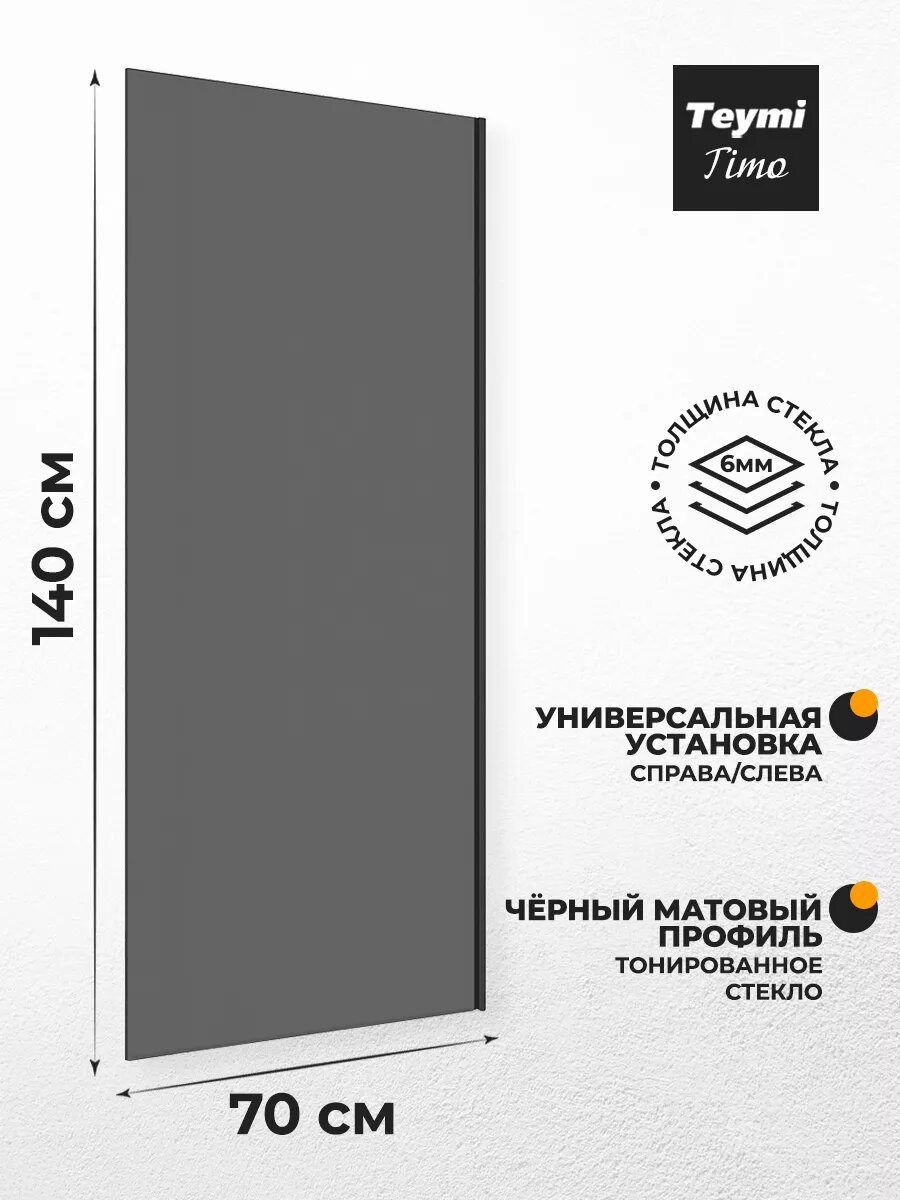 Шторка на ванну стеклянная 70х140 тонированное закаленное стекло профиль черный матовый Teymi Timo S T00275: сравнение цен, характеристики, фото, актуальное наличие и цены.