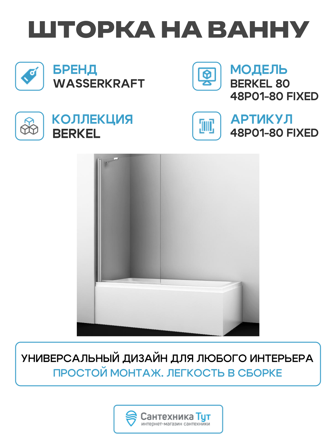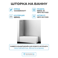 Купить Шторка на ванну WasserKRAFT Berkel 80 48P01-80 Fixed профиль Хром стекло прозрачное алюминий хром Германия с доставкой по всей России. Шторка на ванну WasserKRAFT Berkel 80 48P01-80 Fixed профиль Хром стекло прозрачное алюминий хром Германия: сравнение цен, характеристики, фото, актуальное наличие и цены.