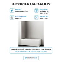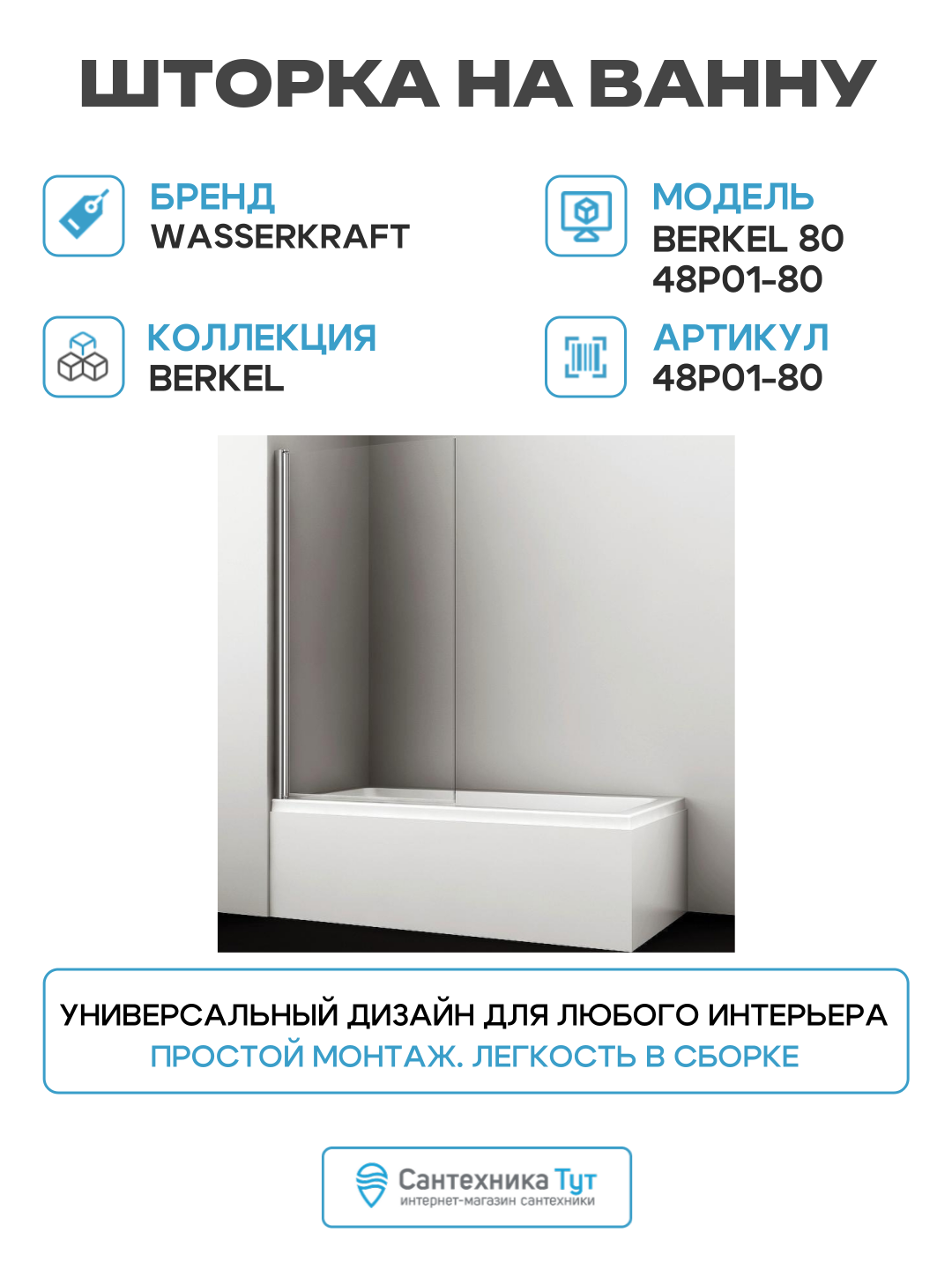Купить Шторка на ванну WasserKRAFT Berkel 80 48P01-80 профиль Хром стекло прозрачное алюминий хром Германия с доставкой по всей России. Шторка на ванну WasserKRAFT Berkel 80 48P01-80 профиль Хром стекло прозрачное алюминий хром Германия: сравнение цен, характеристики, фото, актуальное наличие и цены.