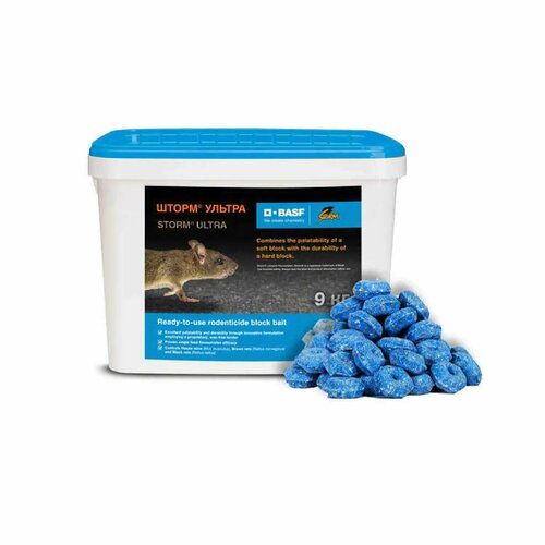 Довольно сильное отравляющее средство от грызунов «Шторм Ультра». Действует с небольшим замедлением, как и большинство других препаратов аналогичного назначения, но зато при значительно меньшей дозировке. Это значит, что любой крысе или мышке достаточно лишь однажды попробовать данную приманку.