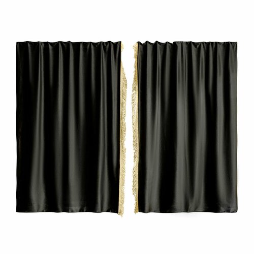 Изготовлены из качественного двойного велюра, шторы обладают свойствами блэкаут, что обеспечивает надежную защиту от солнечных лучей и лишних взглядов. Черный цвет с роскошной бежевой бахромой придаёт вашим шторкам стильный и элегантный вид, отлично сочетаясь с любым интерьером.