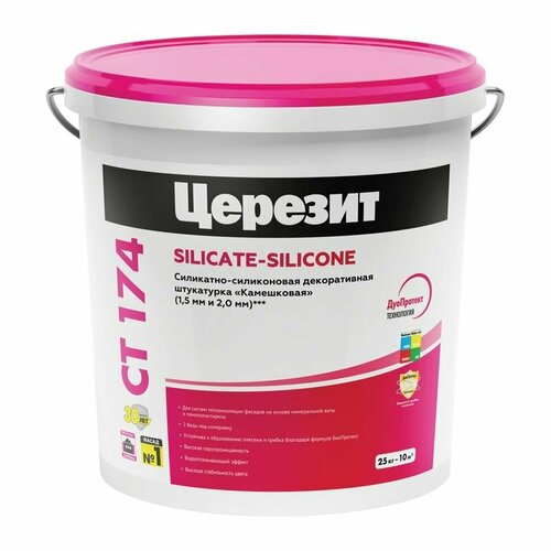 Купить Штукатурка силикатно-силикон. Церезит СТ 174 камешк. 1,5 мм, 25 кг с доставкой по всей России. Штукатурка силикатно-силикон. Церезит СТ 174 камешк. 1,5 мм, 25 кг: сравнение цен, характеристики, фото, актуальное наличие и цены.