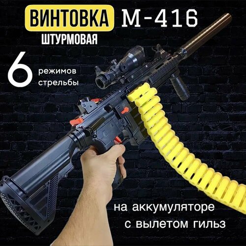 Штурмовая винтовка игрушечная с прицелом, M416, модульная (работает от АКБ или в ручном режиме) + лента из 24 гильз и мягких пули на присосках: сравнение цен, характеристики, фото, актуальное наличие и цены.