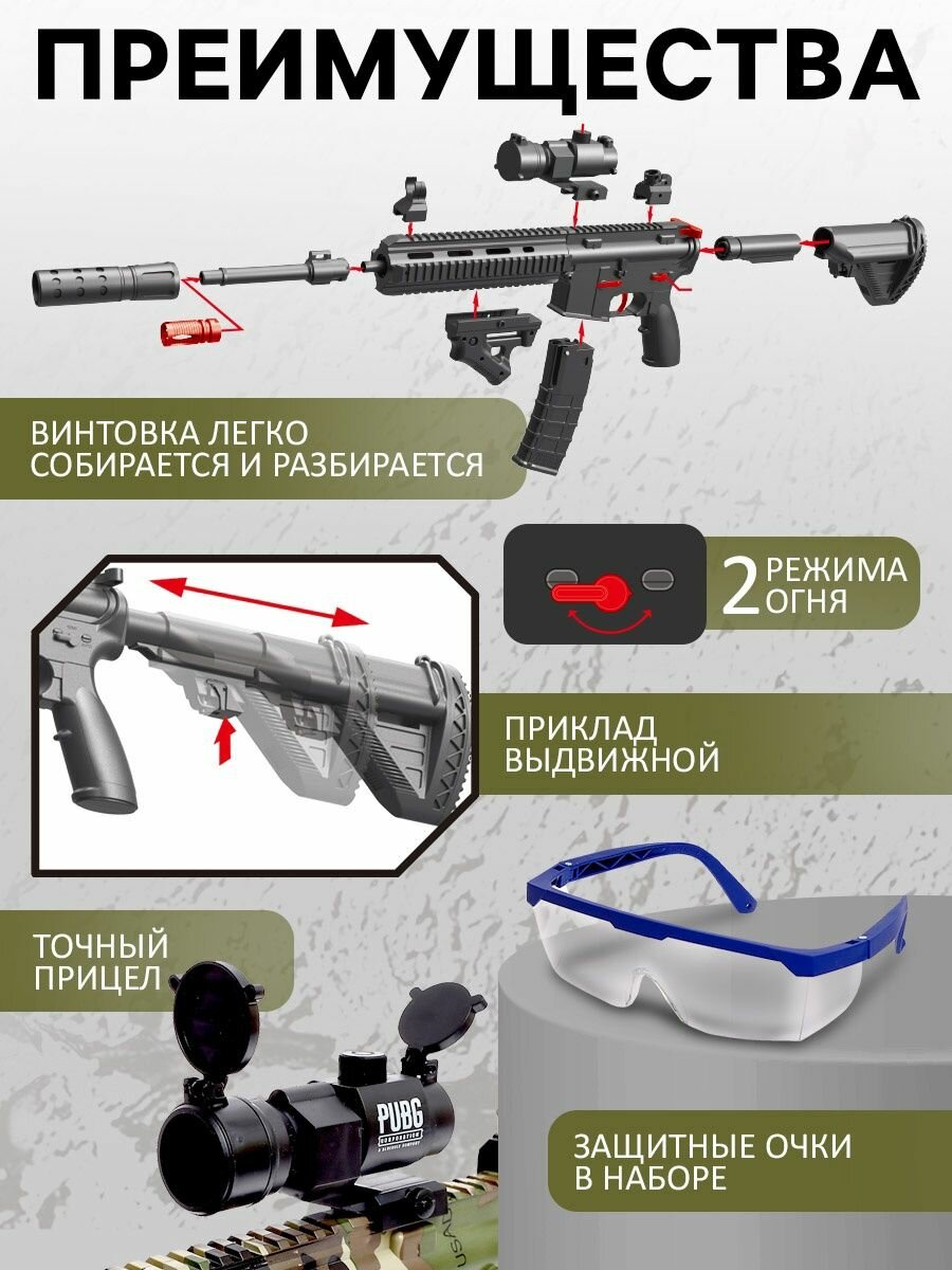 Штурмовая винтовка M416 — это надёжное оружие, которое позволит ребёнку почувствовать себя настоящим бойцом. «Эмка» стреляет гелевыми пулями. Такие снаряды лопаются при столкновении, не оставляют следов и не причиняют вреда.