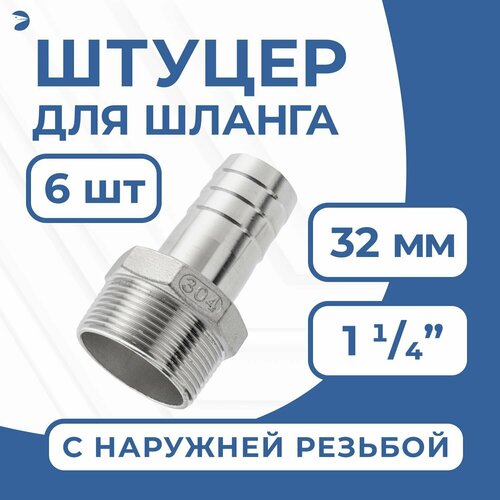 Штуцер для шланга НР 1 1/4″ дюйма на 32 мм, нержавеющий, AISI 304, набор 6 шт: сравнение цен, характеристики, фото, актуальное наличие и цены.