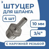 Купить Штуцер для шланга НР 3/4″ дюйма на 10 мм, нержавеющий, AISI 304, набор 4 шт с доставкой по всей России.