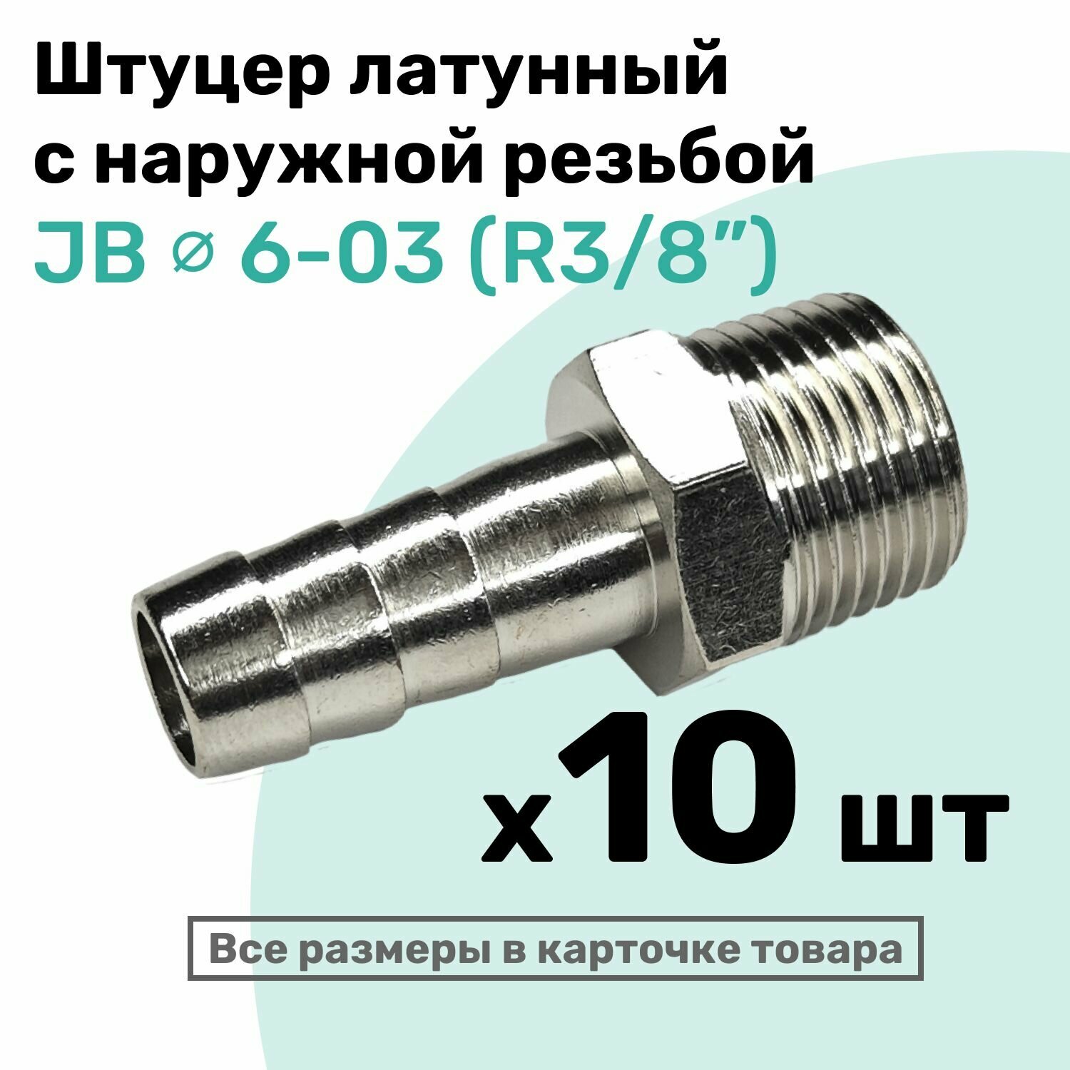 Купить Штуцер латунный елочка с наружной резьбой JB 6-03, 6мм — R3/8″, Пневмоштуцер NBPT, Набор 10шт с доставкой по всей России. Штуцер латунный елочка с наружной резьбой JB 6-03, 6мм — R3/8″, Пневмоштуцер NBPT, Набор 10шт: сравнение цен, характеристики, фото, актуальное наличие и цены.