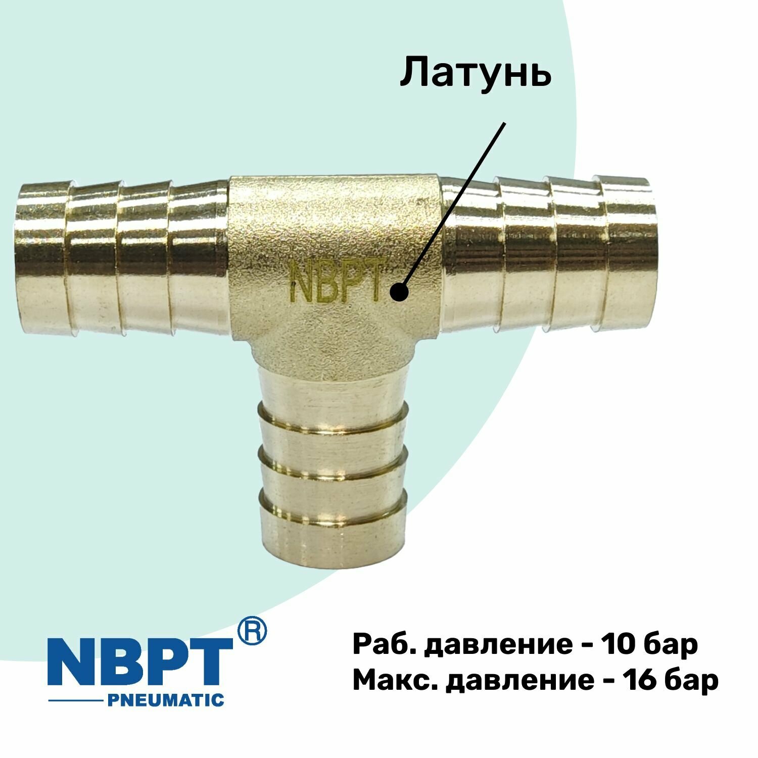 Латунный штуцер-тройник "ёлочка" BBT бренда NBPT используется для соединения пластиковых и резиновых трубок с одинаковым внутренним диаметром в различных магистралях и пневматических линиях.
