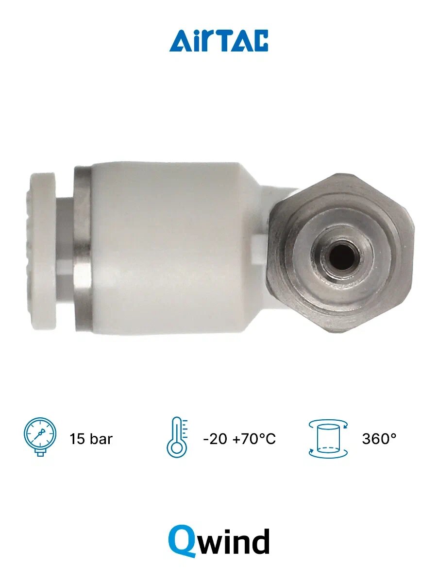 Штуцер цанговый угловой, фитинг пневматический, пневмофитинг Airtac PL4M3-M, M3 под трубку 4 мм (уп.10 шт): сравнение цен, характеристики, фото, актуальное наличие и цены.
