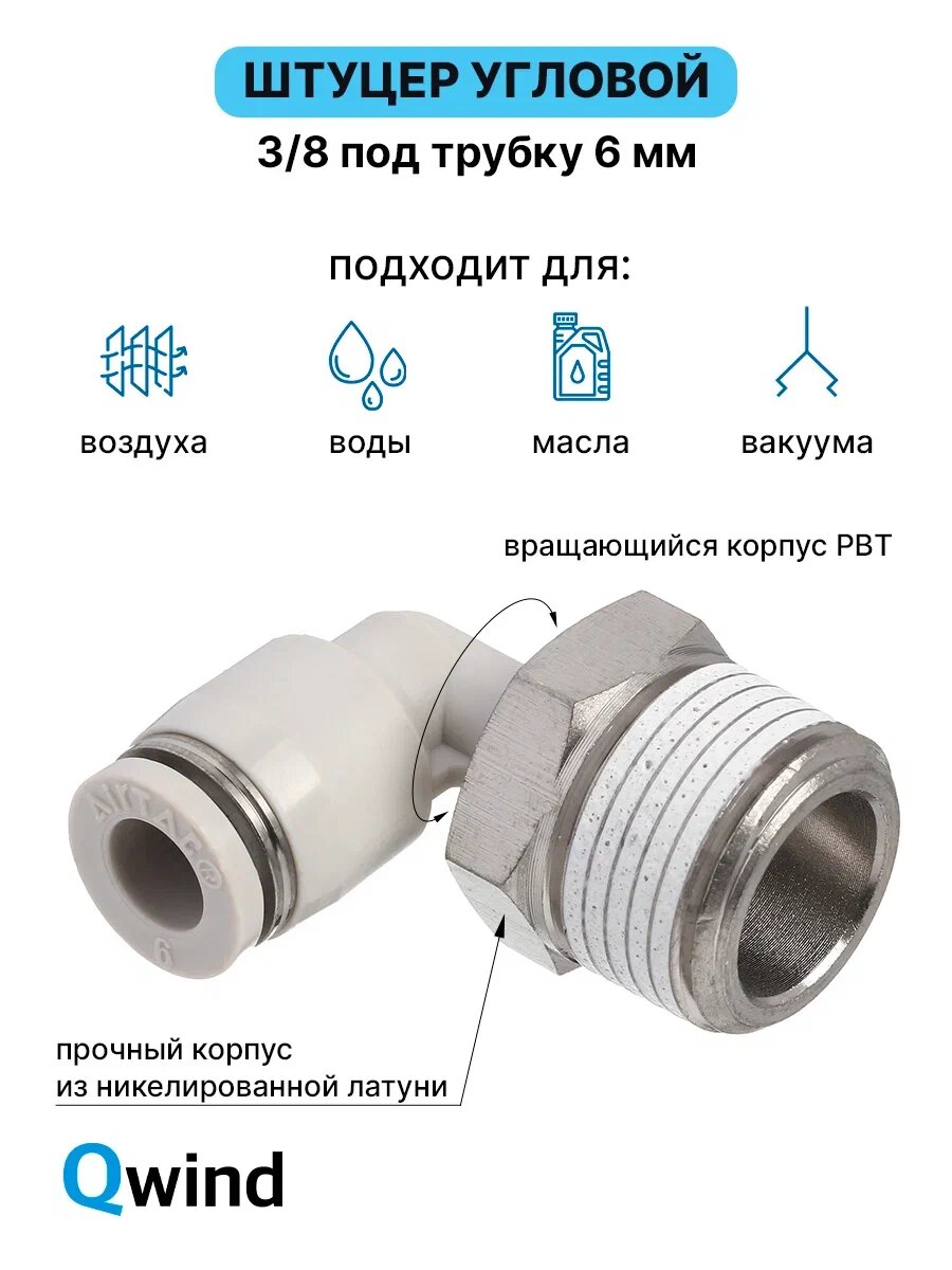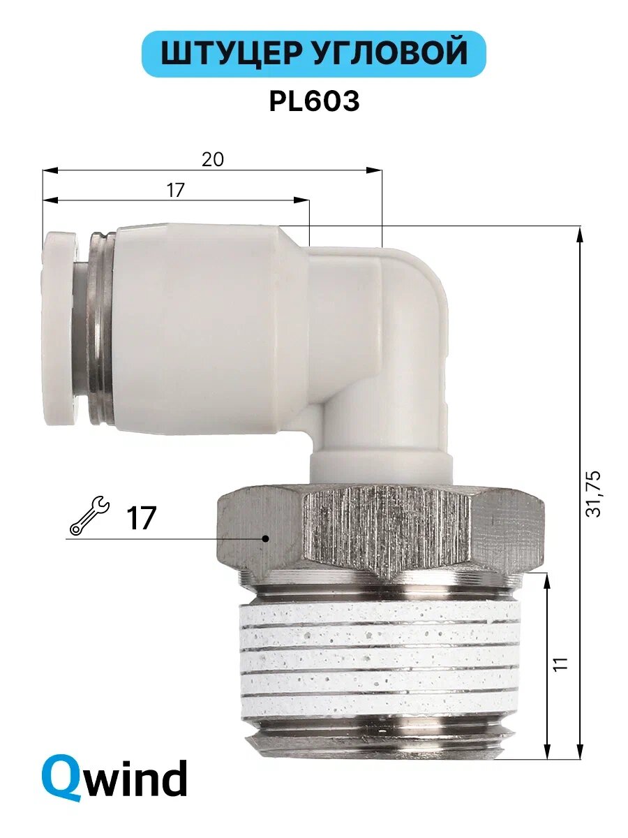 Штуцер цанговый угловой, фитинг пневматический, пневмофитинг Airtac PL603, R3/8 под трубку 6 мм (уп.10 шт): сравнение цен, характеристики, фото, актуальное наличие и цены.
