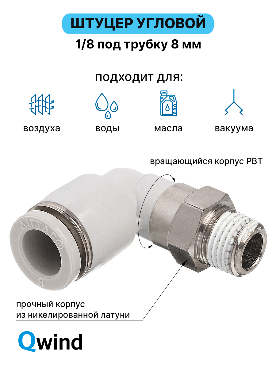 Штуцер цанговый угловой, фитинг пневматический, пневмофитинг Airtac PL801, R1/8 под трубку 8 мм (уп.10 шт): сравнение цен, характеристики, фото, актуальное наличие и цены.