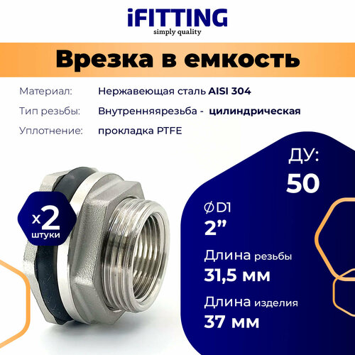 Купить Штуцер врезка в бак (емкость) нержавеющий 2″ ДУ50 (уп. 2 шт.) с доставкой по всей России. Штуцер врезка в бак (емкость) нержавеющий 2″ ДУ50 (уп. 2 шт.): сравнение цен, характеристики, фото, актуальное наличие и цены.