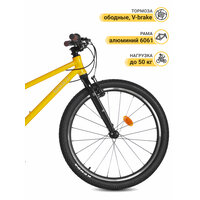 Высота сиденья регулируется под рост ребенка, а ручки ободных тормозов V-brake — под детские пальцы. В комплект входят катафоты и звонок, а на раму нанесены светоотражающие надписи, чтобы юные велосипедисты были еще заметнее на дороге.