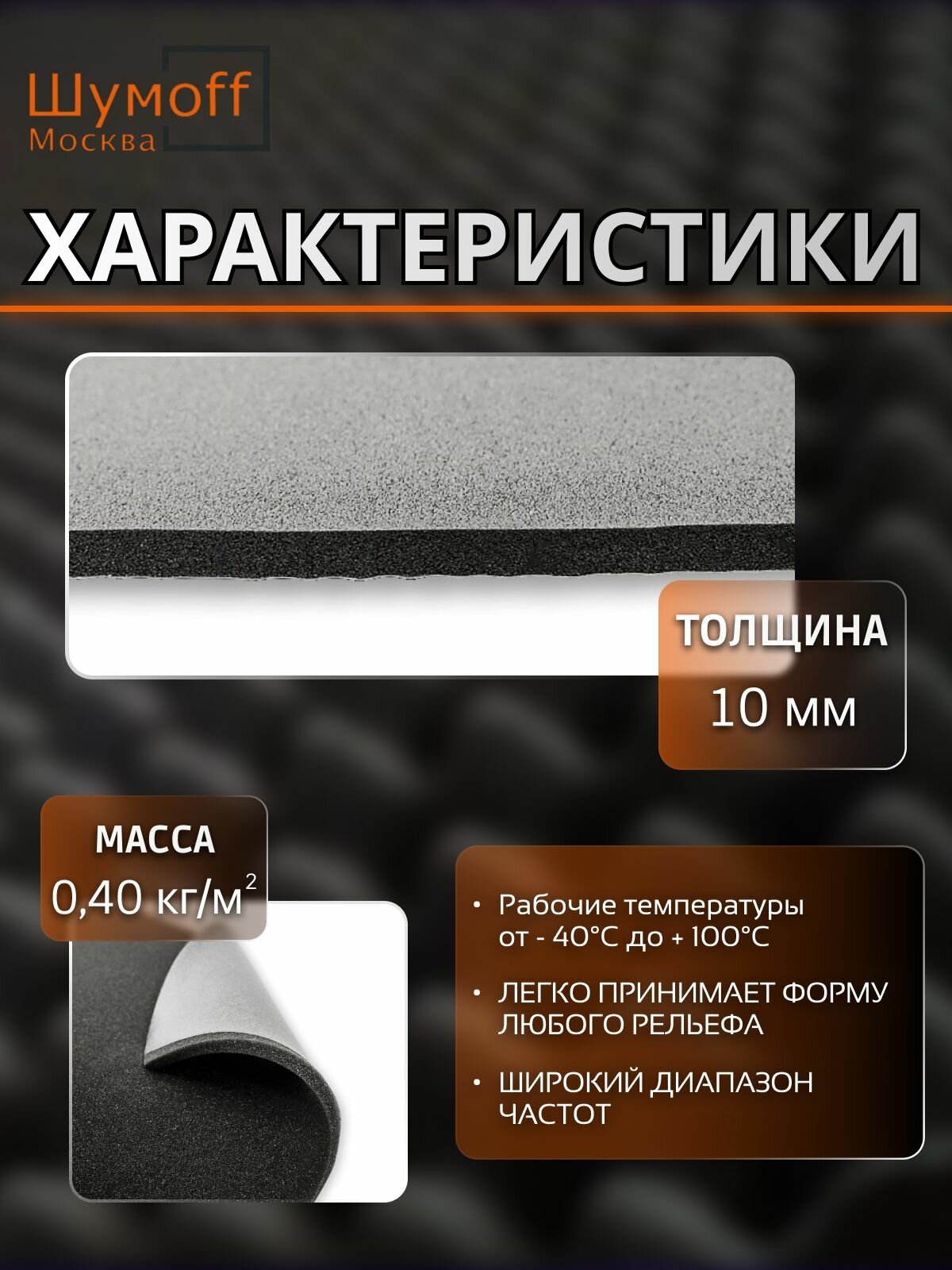 Купить Шумофф Practik Flex 10 серый — Звукопоглощающий, уплотнительный материал / Самоклеющийся акустический поролон / Шумоизоляция для автомобиля с доставкой по всей России.