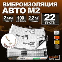 Шумоизоляция для автомобиля Шумофф М2 — 22 листа + ролик прикаточный. Толщина 2 мм. Виброизоляция авто, вибропласт, вибродемпфер, шумка в машину. Шумоизоляция для дверей, крыши, потолка, капота, локеров. Звукоизоляция в авто Шумоff 2 мм.