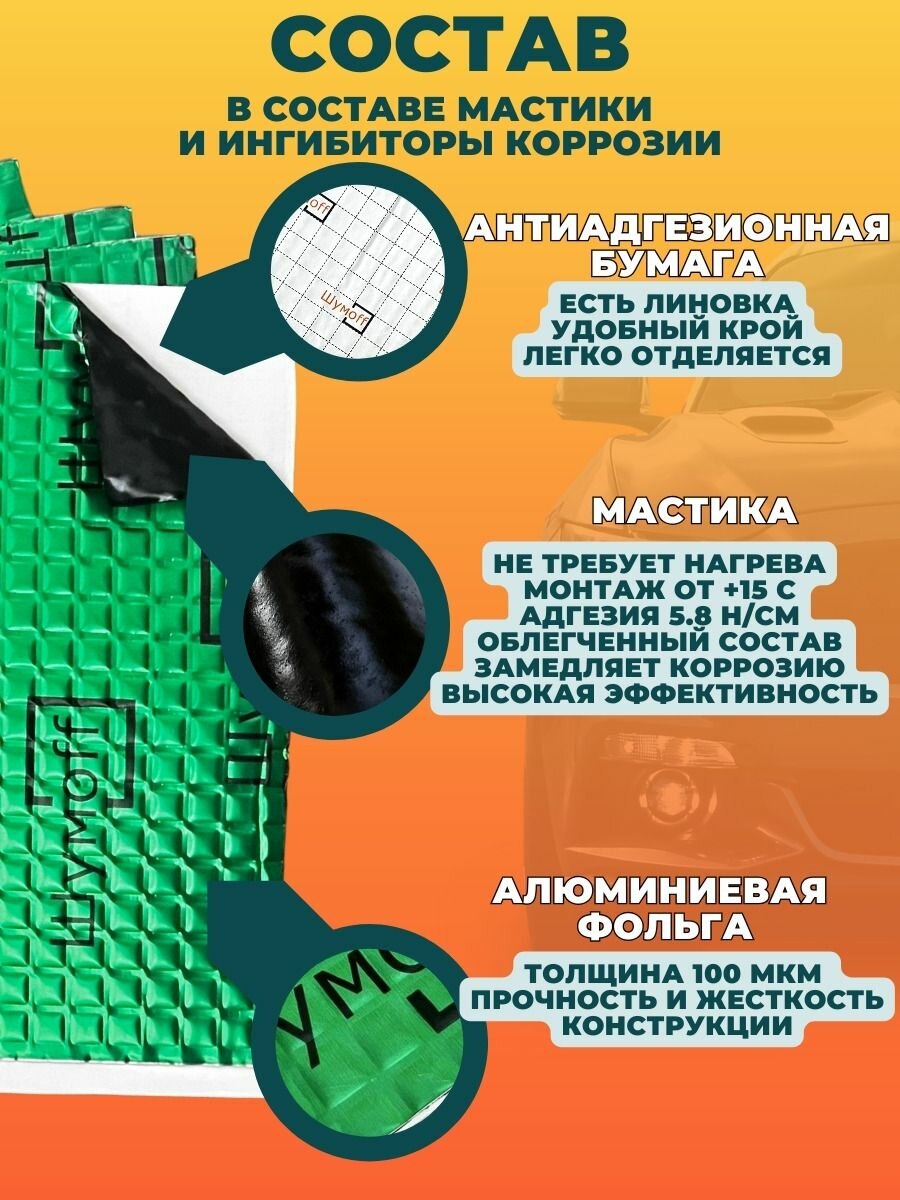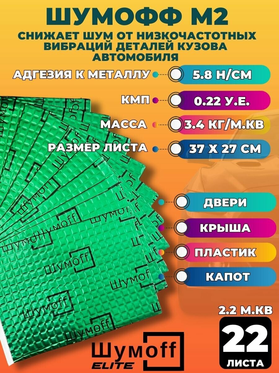 Шумоизоляция для автомобиля Шумофф М2 — 22 листа, виброизоляция 2мм для тюнинга салона, самоклеящаяся звукоизоляция для авто: сравнение цен, характеристики, фото, актуальное наличие и цены.