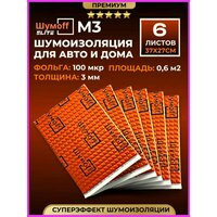 Шумоизоляция для автомобиля Шумофф М3 — 6 листов. Толщина 3 мм. Виброизоляция авто, вибропласт, вибродемпфер, шумка в машину. Шумоизоляция для дверей, крыши, потолка, капота, арок, пола, багажника. Звукоизоляция в авто 3 мм. Шумоизоляция ванны, стояка