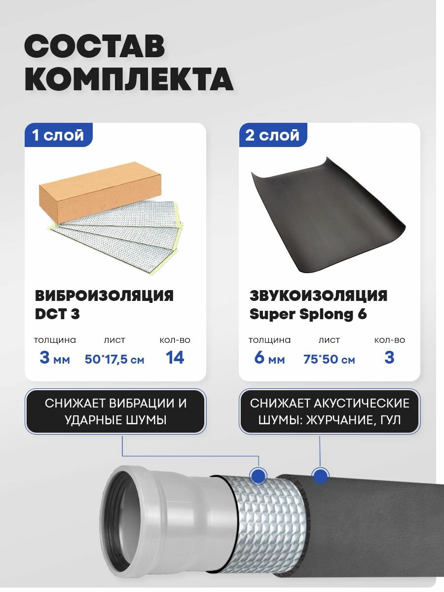 Шумоизоляция для труб набор DCT Optimum для всех типов труб. Звукоизоляция сантехники, канализации 110, стояка. Для ванной и кухни, вентиляции: сравнение цен, характеристики, фото, актуальное наличие и цены.