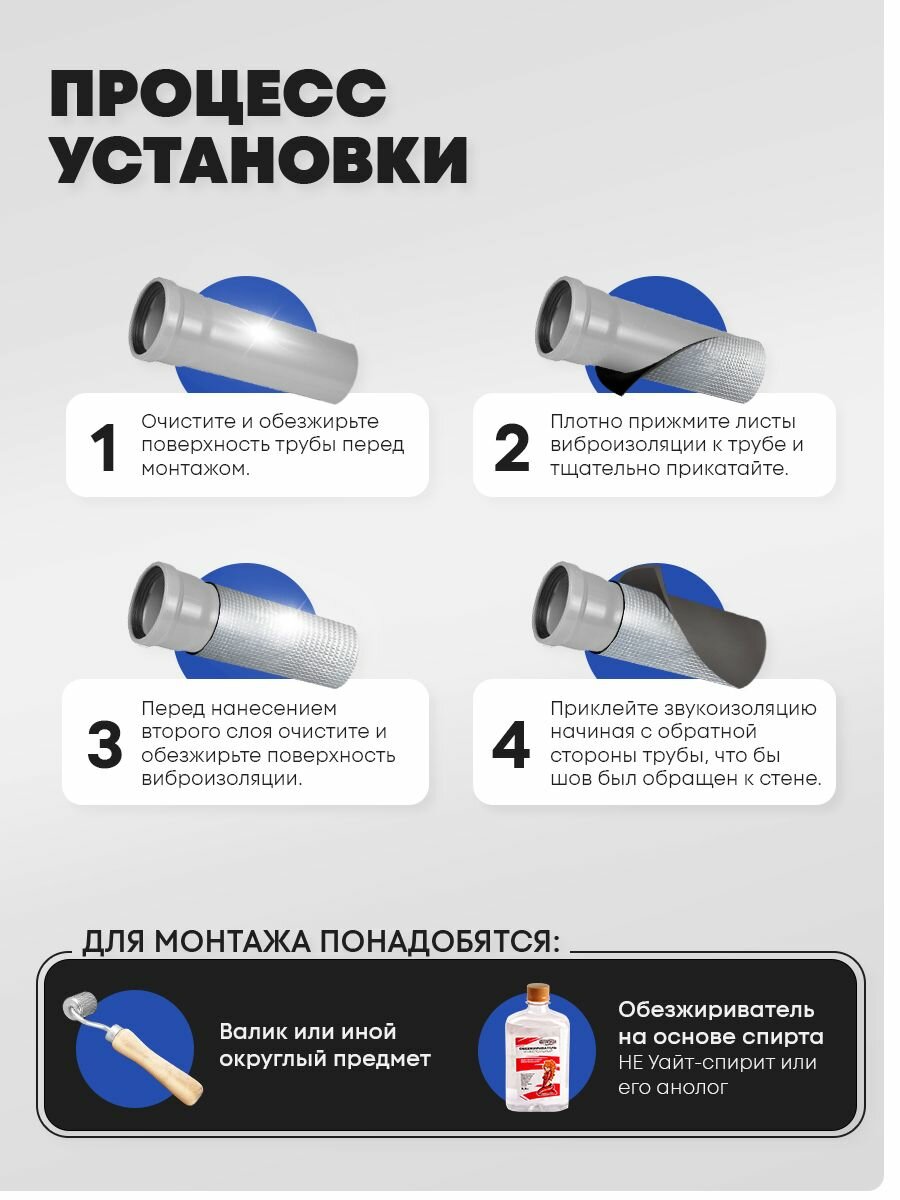 Купить Шумоизоляция для труб набор DCT Optimum для всех типов труб. Звукоизоляция сантехники, канализации 110, стояка. Для ванной и кухни, вентиляции с доставкой по всей России.