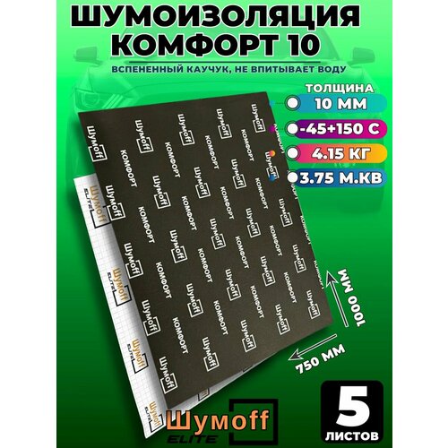 Шумофф Комфорт 10 является тепло-звукоизоляционным материалом на основе вспененной резины черного цвета с водостойким клеевым слоем. Шумоизоляция Комфорт, толщиной 10мм низко горючий и не впитывает воду. Монтажный слой теплоизоляции защищен антиадгезионной бумагой с фирменным логотипом и линовкой. Идеально подходит для обработки поверхностей, имеющих выступы, изгибы и углубления.