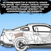 Низкочастотный гул имеет большую длину волны, для торможения которой нужна не только вязкая структура пенополиуретана, но и большая толщина, которую можно разместить в полостях и задних крыльях, в которых такой звук усиливается словно в бочке или барабане.