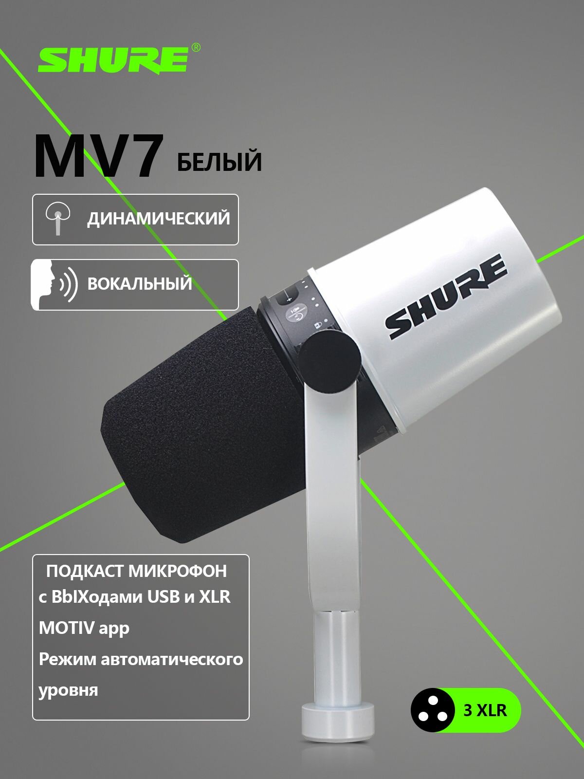 Купить Shure MV7 Белый профессиональный гибридный микрофон для подкастов и потоковых медиа с доставкой по всей России.