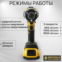 Наш ударный шуруповерт аккумуляторный бесщеточный Remtools 18V- это инструмент, который обеспечивает быстрое и эффективное затягивание винтов в твердые материалы, такие как дерево, металл и бетон.