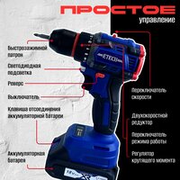 Купить Шуруповерт аккумуляторный бесщеточный ETECH TEH-18BL, 18В, 2 аккумулятора 2А/ч, 60Нм, металлический патрон + набор насадок с доставкой по всей России.