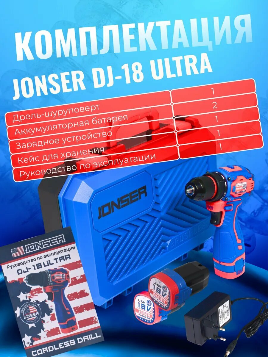 Купить Шуруповерт аккумуляторный бесщеточный JONSER DJ-18 ULTRA с доставкой по всей России. Шуруповерт аккумуляторный бесщеточный JONSER DJ-18 ULTRA: сравнение цен, характеристики, фото, актуальное наличие и цены.