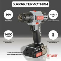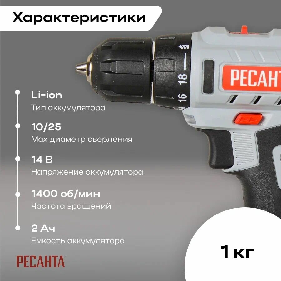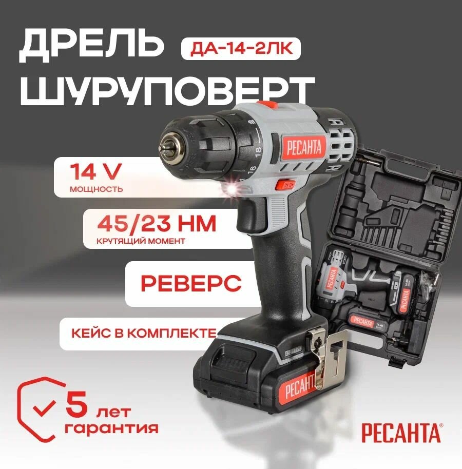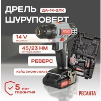 Шуруповерт аккумуляторный ДА-14-2ЛК Ресанта/ Дрель с щеточным двигателем/ Аккумулятор 2 шт./ Кейс в комплекте: сравнение цен, характеристики, фото, актуальное наличие и цены.