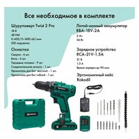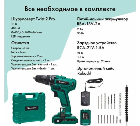 Купить Аккумуляторная дрель-шуруповерт Rokodil Twist 2 Pro 18В/48Нм/2Ач 1045101 с доставкой по всей России. Аккумуляторная дрель-шуруповерт Rokodil Twist 2 Pro 18В/48Нм/2Ач 1045101: сравнение цен, характеристики, фото, актуальное наличие и цены.