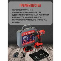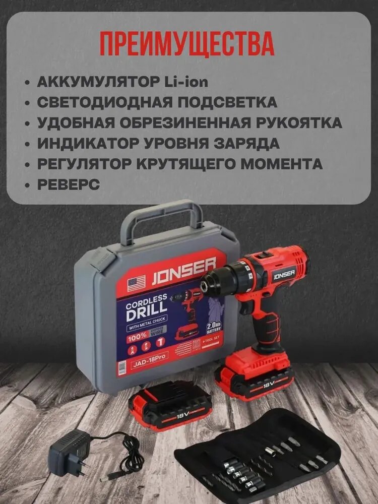 Купить Шуруповерт аккумуляторный JONSER JAD-18PRO в кейсе (25 Нм, 18 В, 2 АКБ Li-ion, 2.0 Ач, набор бит в комплекте) с доставкой по всей России. Шуруповерт аккумуляторный JONSER JAD-18PRO в кейсе (25 Нм, 18 В, 2 АКБ Li-ion, 2.0 Ач, набор бит в комплекте): сравнение цен, характеристики, фото, актуальное наличие и цены.