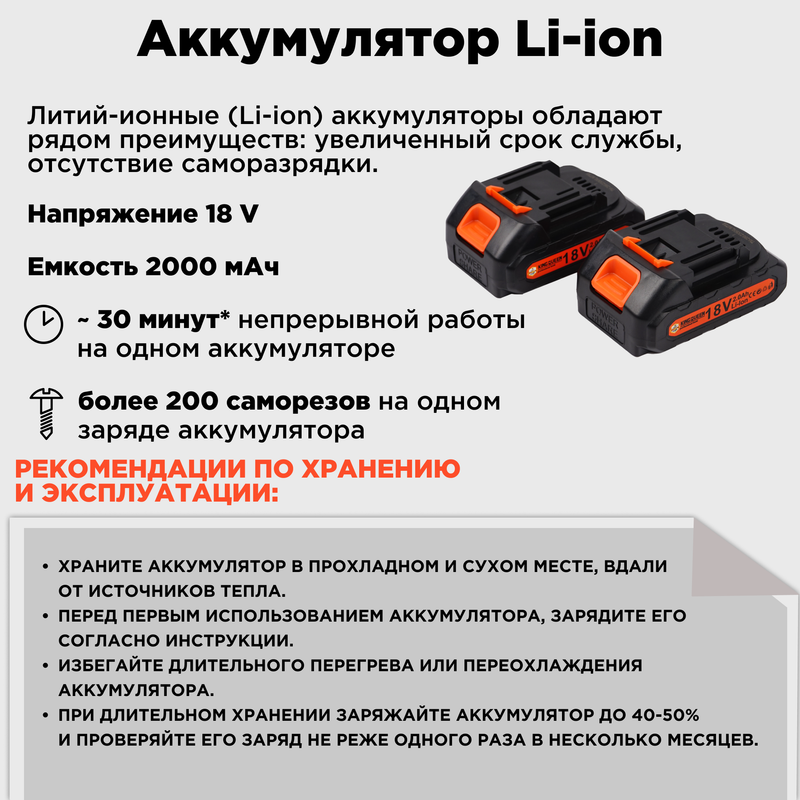 | Напряжение аккумулятора | 18 В |
