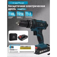 Купить Шуруповерт AneerPower, ударный, 21 В, 130Вт, бесщеточный, Li-Ion, 2 аккумулятора+14 аксессуаров. с доставкой по всей России.