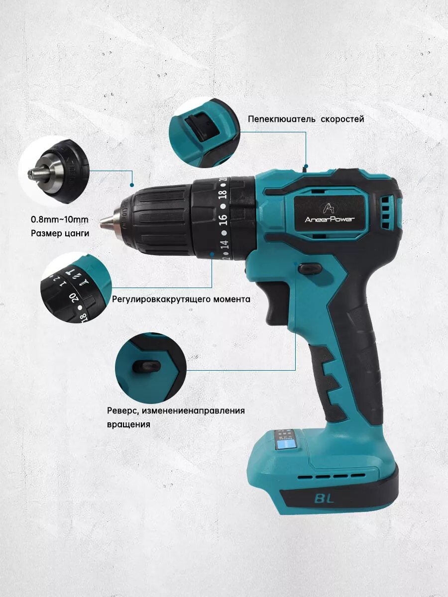 Шуруповерт AneerPower, ударный, 21V, бесщеточный, синий, с LED-подсветкой (Батарея в комплект не входит): сравнение цен, характеристики, фото, актуальное наличие и цены.