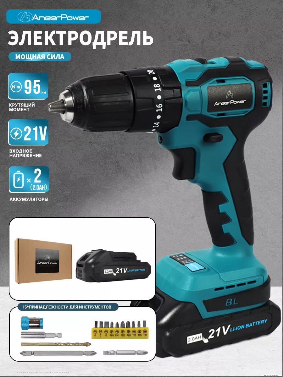 Шуруповерт ANEERPOWER, ударный, синий, с антистатиком, 21v 2 аккумулятора по 2,0 Ач.: сравнение цен, характеристики, фото, актуальное наличие и цены.