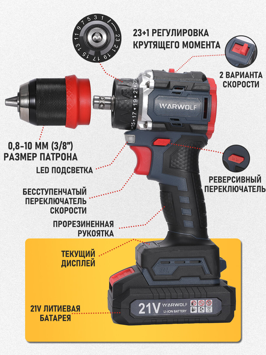 Шуруповерт дрель аккумуляторный 2 в 1 бесщеточный ударный Warwolf 21В, в кейсе 2 АКБ 1.5 а/ч, 80 H/M: сравнение цен, характеристики, фото, актуальное наличие и цены.