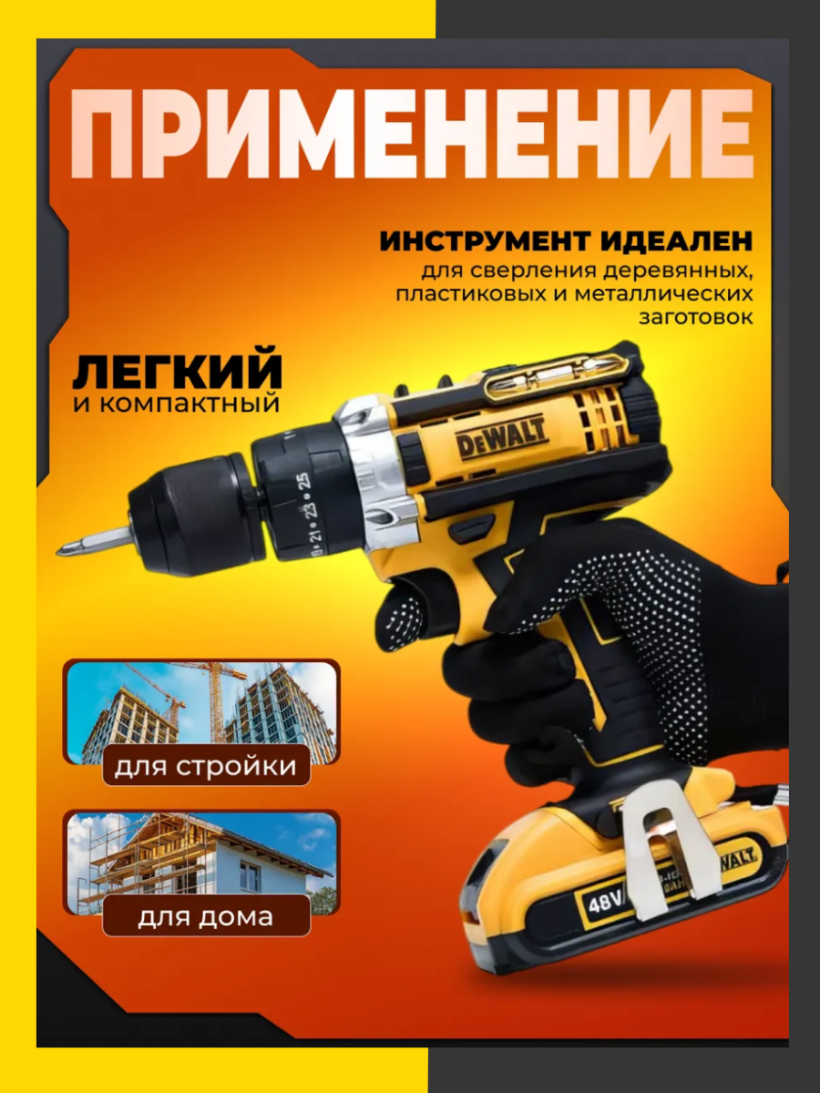 Аккумуляторная дрель-шуруповерт - это мощный и надежный инструмент, который станет незаменимым помощником в домашнем хозяйстве и мелком ремонте. Аккумуляторная дрель-шуруповерт оснащена современным литиевым аккумулятором, который обеспечивает долгую и стабильную работу инструмента. Благодаря этому, вы сможете выполнять различные работы в любых условиях, не беспокоясь о подзарядке. Надежный кейс для хранения и транспортировки В комплекте с дрелью-шуруповертом идут различные насадки, которые делают инструмент универсальным помощником в быту и быстрой сборке мебели. Подходит для профессионального использования Благодаря прочности, быстрой подзарядке и высокой отдаче мощности, дрель-шуруповерт подходит как для домашнего использования, так и для профессионального применения. Щеточный двигатель для оптимизации ресурса аккумулятора Щеточный двигатель оптимизирует ресурс аккумулятора, помогая выполнять работы разной сложности в любых помещениях. Два аккумулятора для непрерывной работы В наборе предусмотрены два аккумулятора, что обеспечивает непрерывную работу инструмента. Удобство и мобильность Удобство и мобильность позволяют использовать дрель-шуруповерт как в домашних условиях, так и для строительных задач. Пластиковый кейс для защиты от повреждений и грязи Пластиковый кейс защищает инструмент от повреждений и грязи, обеспечивая его сохранность и удобство хранения. Литиевый аккумулятор для быстрой зарядки и стабильной работы Литиевый аккумулятор быстро заряжается и поддерживает стабильную работу электроинструмента, обеспечивая его долгую и надежную службу.
