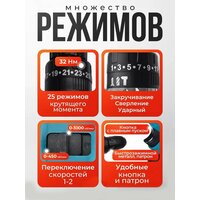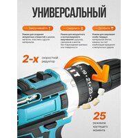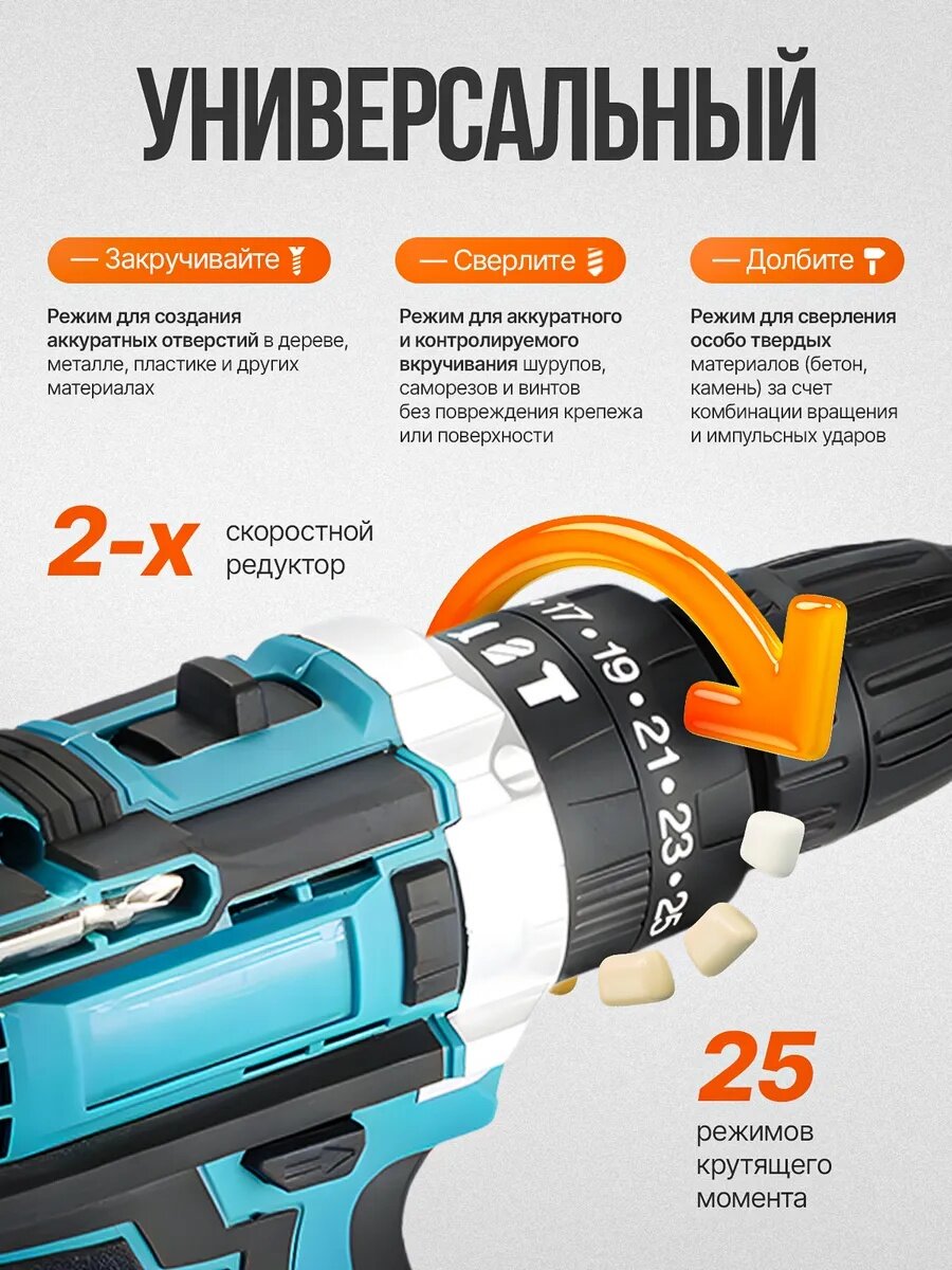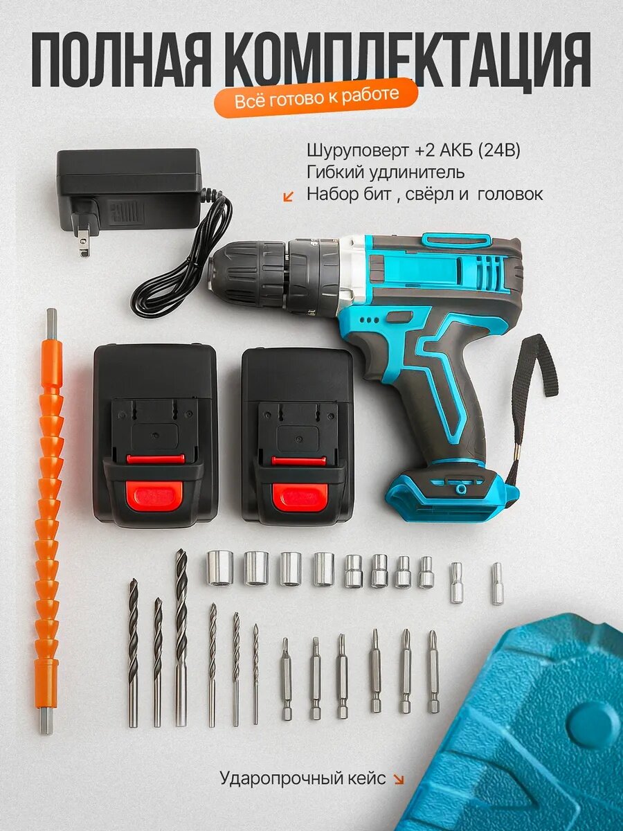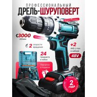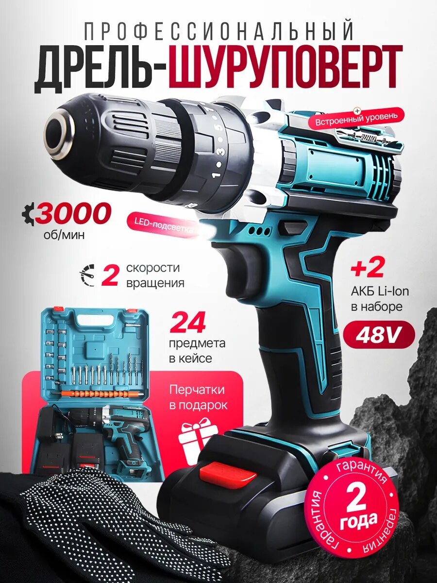 Купить Шуруповёрт-дрель аккумуляторная, с ударом, 48В, 2 скорости, 2 АКБ, зарядка, кейс с доставкой по всей России.