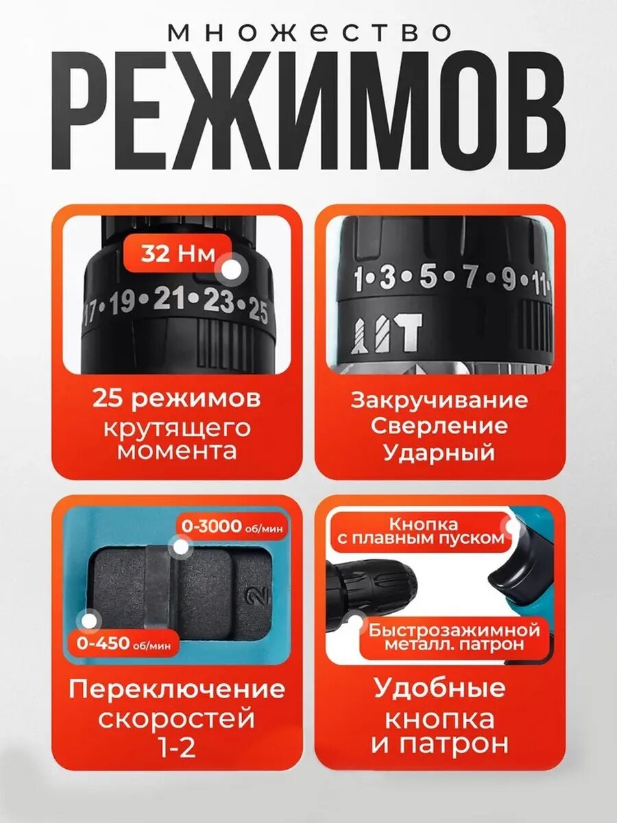 Шуруповёрт-дрель аккумуляторная, с ударом, 48В, 2 скорости, 2 АКБ, зарядка, кейс: сравнение цен, характеристики, фото, актуальное наличие и цены.