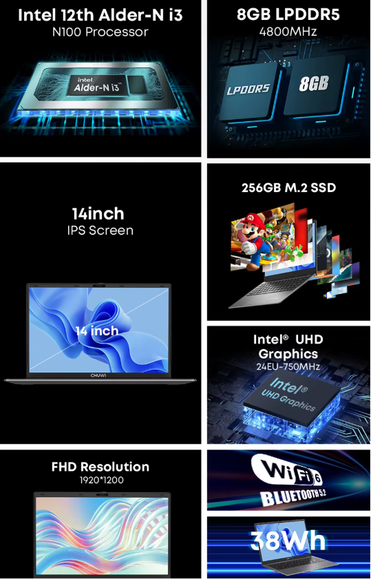 Купить Шустрый Ноутбук для работы и офиса Chuwi GemiBook Xpro Intel N100 8ГБ/256ГБ + Сумка + Мышка, 14″ IPS FHD Win11, Гарантия с доставкой по всей России. Шустрый Ноутбук для работы и офиса Chuwi GemiBook Xpro Intel N100 8ГБ/256ГБ + Сумка + Мышка, 14″ IPS FHD Win11, Гарантия: сравнение цен, характеристики, фото, актуальное наличие и цены.