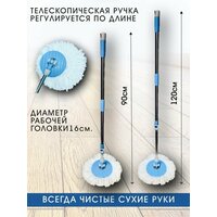 Швабра с отжимом без ведра – это идеальное решение для быстрого и удобного мытья полов без лишних усилий. Оснащена прочной телескопической ручкой с фиксатором, которая регулируется от 90 до 120 см, обеспечивая комфортную уборку для пользователей разного роста.