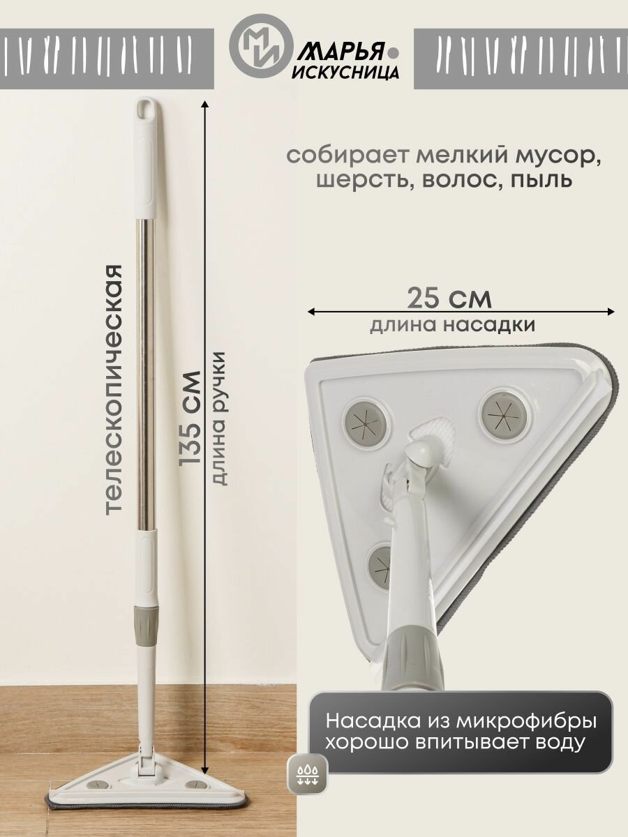 Швабра для мытья полов телескопическая с насадкой из микрофибры, Марья Искусница: сравнение цен, характеристики, фото, актуальное наличие и цены.