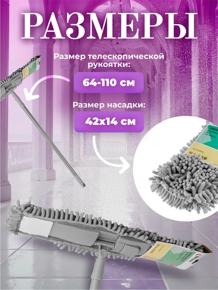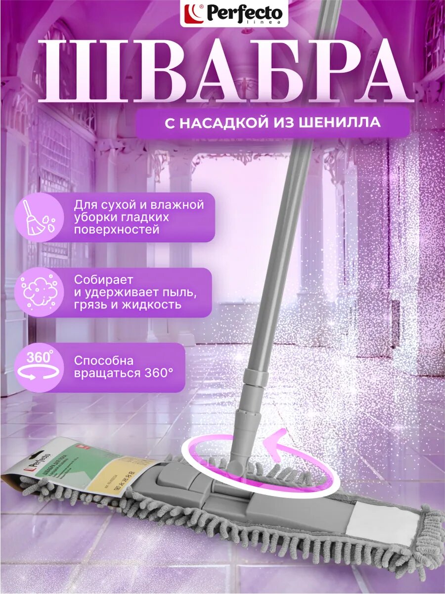 Швабра для пола PERFECTO LINEA Solid с насадкой из шенилла серая (43-492034): сравнение цен, характеристики, фото, актуальное наличие и цены.