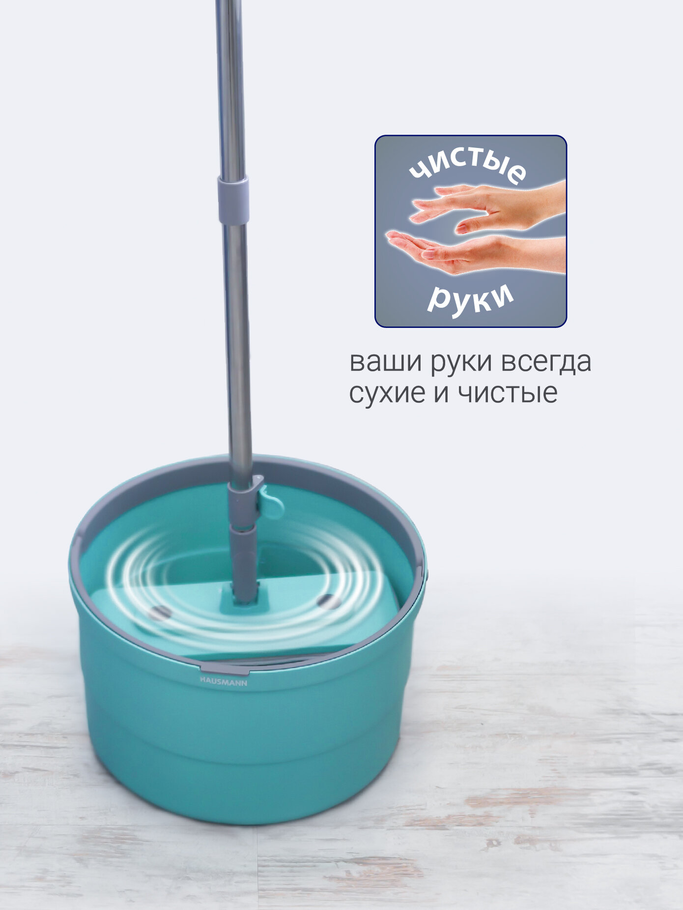 Купить Швабра Hausmann Virginia для мытья полов и ведро с отжимом, система сепарации грязной воды с доставкой по всей России.