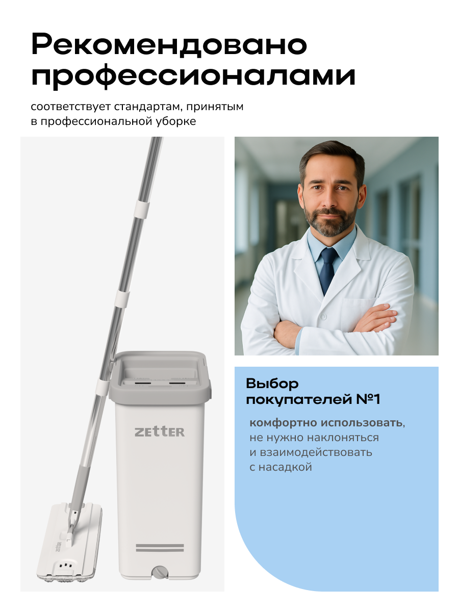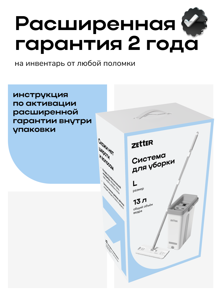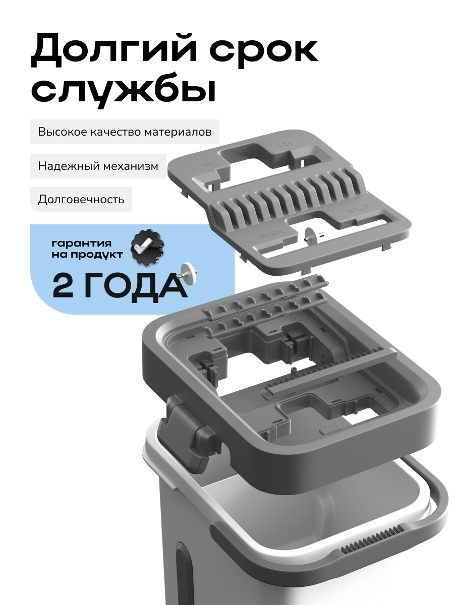 Швабра с отжимом и ведром Zetter L (13 л), серая, 2 насадки в комплекте: сравнение цен, характеристики, фото, актуальное наличие и цены.