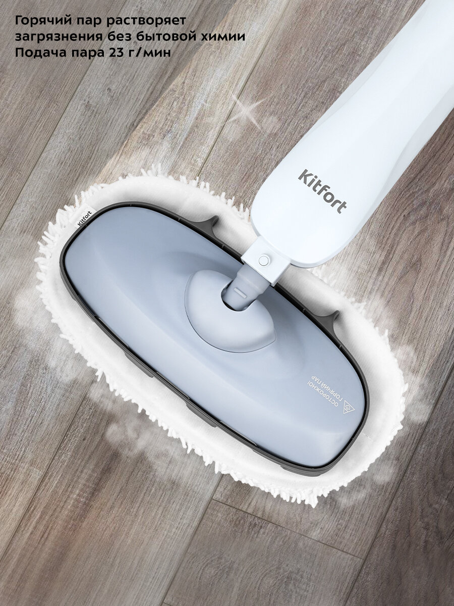 Паровая швабра Kitfort КТ-1071 - это современное и эффективное устройство для уборки дома. Она позволяет быстро и без усилий очистить различные поверхности от грязи, пыли и микробов.