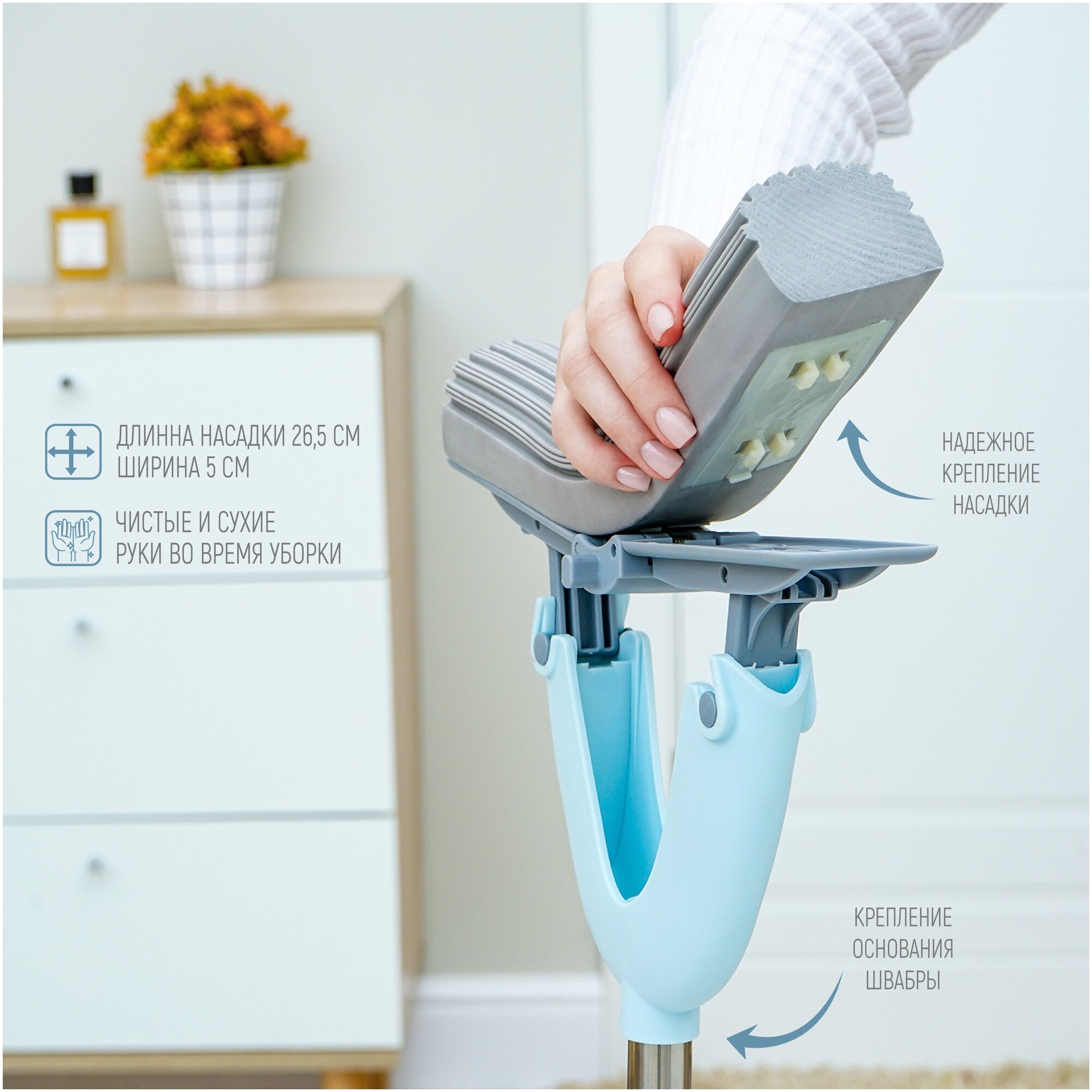 Умная швабра с отжимом и ведром. для мытья полов 10 литров с насадками для швабры 4 шт BIRDS AND FISH